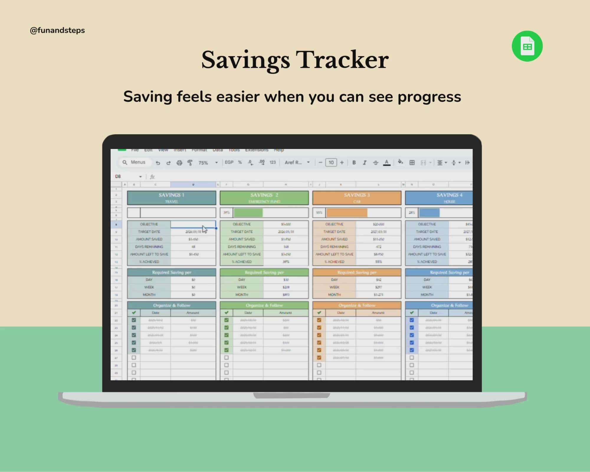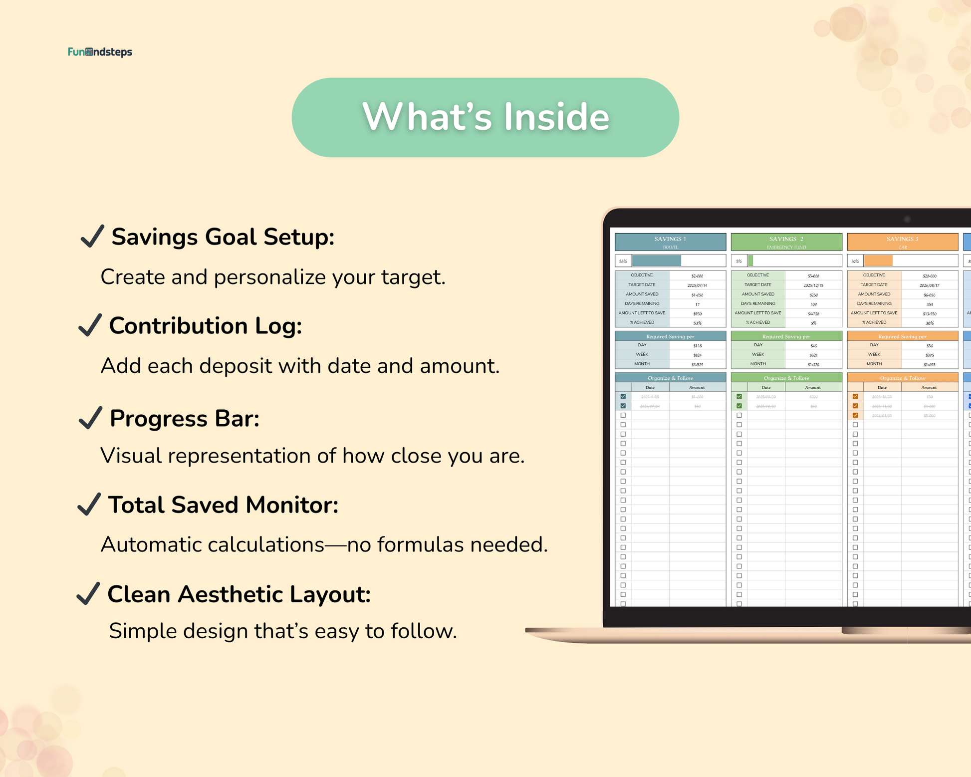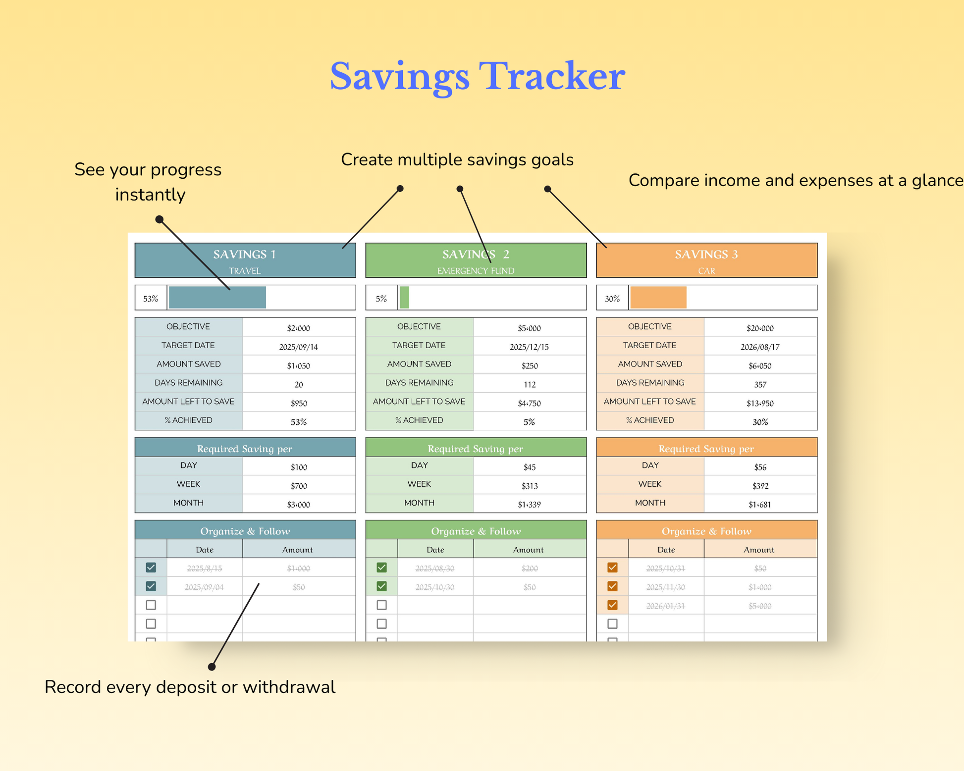 With this Savings Tracker, saving money becomes simple, fun, and motivating!